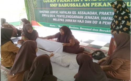 Menurut Kepala SMP Babussalam Pekanbaru, Ustadz Khoirul Fajri Lc MH, seluruh santri kelas 9 SMP Babussalam diwajibkan untuk mengikuti ujian praktik pondok ini. Materi yang diuji mencakup berbagai aspek keagamaan dan keberagaman Islam. Antara lain kutbah Jumat untuk santri putra, pidato untuk santri putri, setoran QS as-Sajadah, hafalan doa, praktik shalat fardu dan zikir, serta doa setelah shalat.