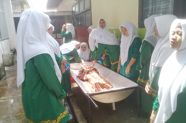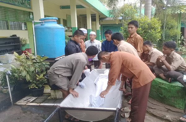 Praktik penyelenggaraan jenazah merupakan materi wajib kurikulum Pondok Pesantren Babussalam Pekanbaru.