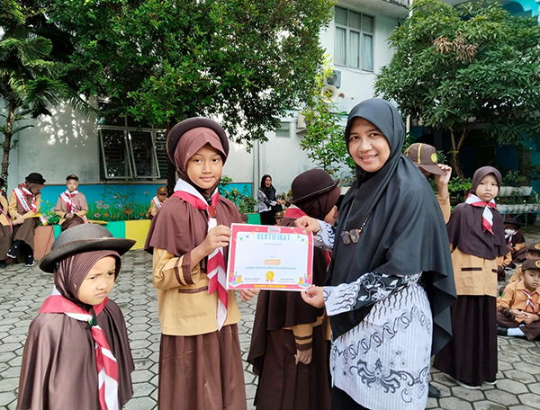 Para santri SD Babussalam menyambut antusias kegiatan tersebut. Mereka melakoni dengan semangat plus gembira.