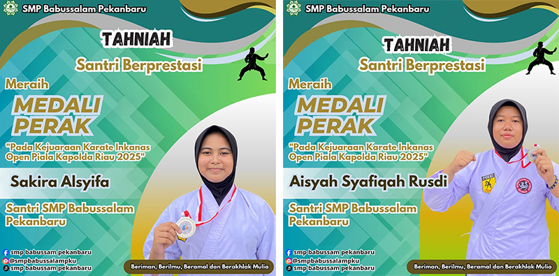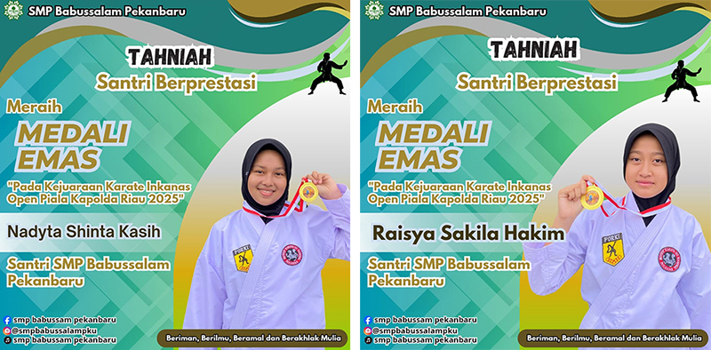 Empat santriwati SMP Babussalam Pekanbaru menorehkan prestasi di ajang Kejuaraan Karate Inkanas Open Piala Kapolda Riau 2025. Kejuaraan berlangsung di GOR Remaja, Jalan Sudirman Pekanbaru, Jumat-Sabtu 21-22 November 2025.