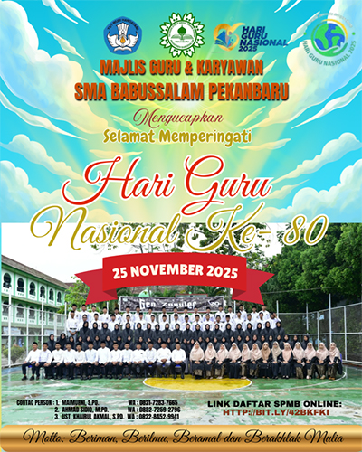 Selain mengikuti upacara bendera, keluarga besar SMA Babussalam Pekanbaru punya cara lain memperingati Hari Guru Hari Guru Nasional (HGN) ke-80 pada Selasa, 25 November 2025. Mereka menggelar Fun Competition alias lomba seru-seruan dan menyenangkan.