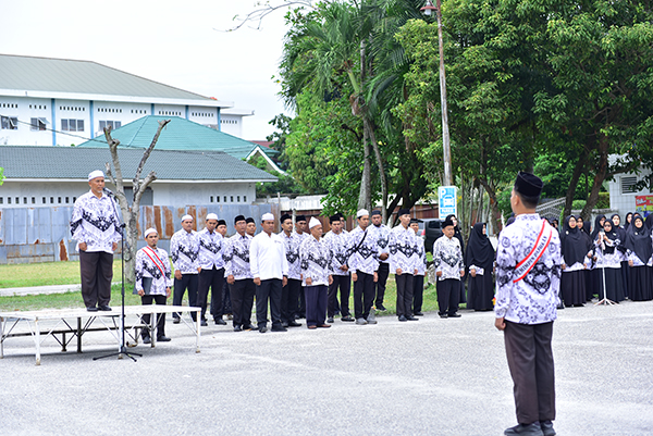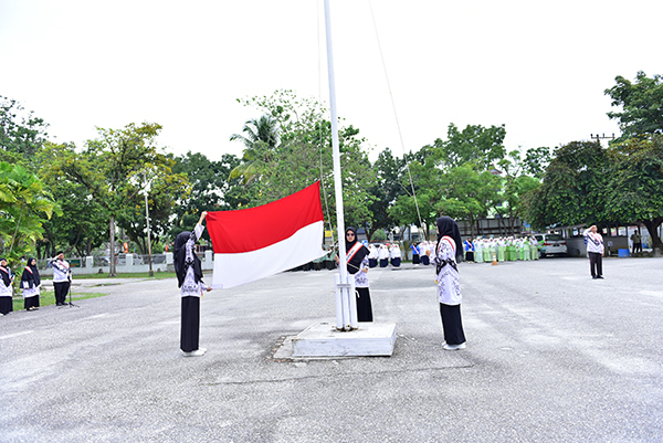 Upacara berlangsung khidmat sejak pukul 07.30 WIB, diikuti oleh ratusan peserta didik dan mejelis guru dari semua tingkatan.