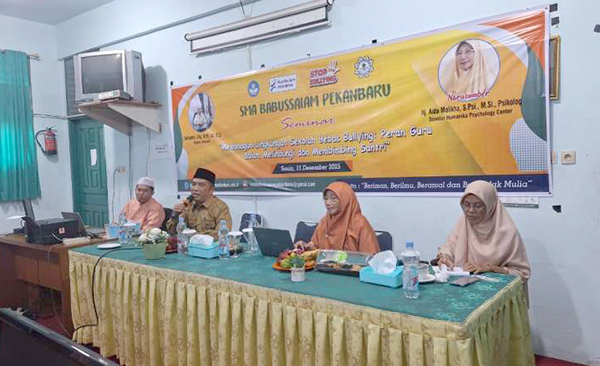 SMA Babussalam Pekanbaru menggelar seminar pembekalan bagi pendidik dan tenaga kependidikan bertajuk antisipasi praktik bullying di kalangan santri. Acara yang berlangsung pada Senin, 15 Desember 2025 di Laboratorium Multimedia sekolah.