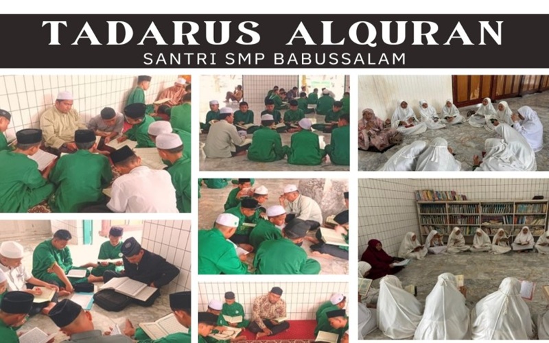 PARA santriwan dan santriwati SMP Babussalam langsung tancap gas dengan agenda tadarus di Masjid Darussalam, kompleks ponpes.