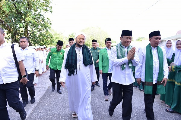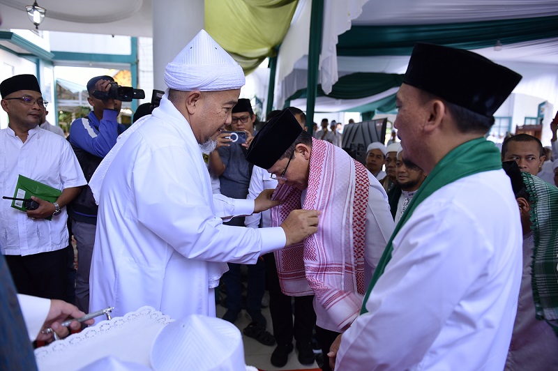 Bapak H. Muhammad Mardiono Hadir, Tuan Guru Sambut dengan Kopiah Khas dan Syal Kafiyeh